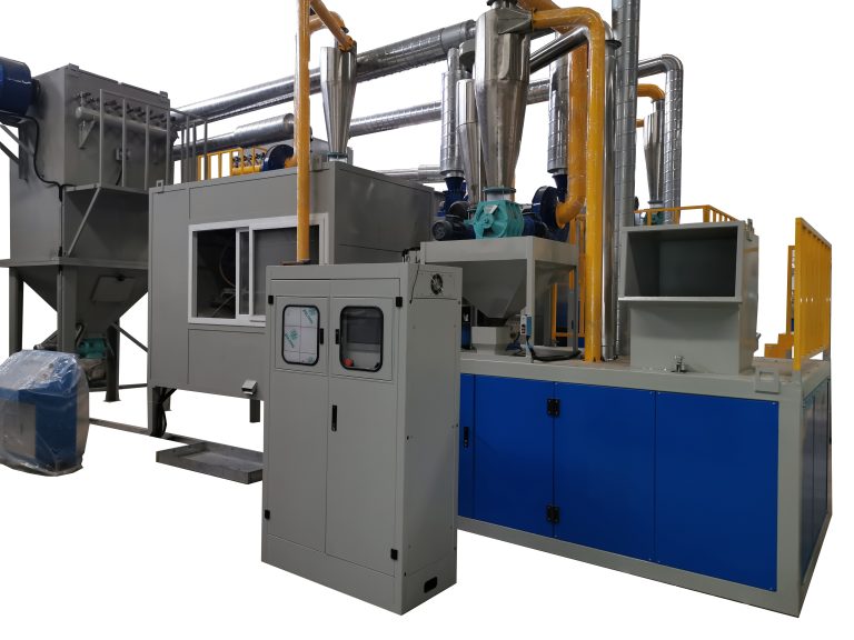 技术层面已实现显著升级。主流设备采用 “破碎 – 磨粉 – 筛分 – 静电分选” 干式工艺,经水冷涡轮磨粉机细化至 24 目粉末后,借双辊轴静电分选机利用导电性差异分离,纯度可达 99